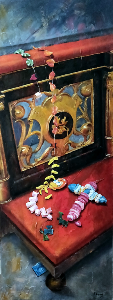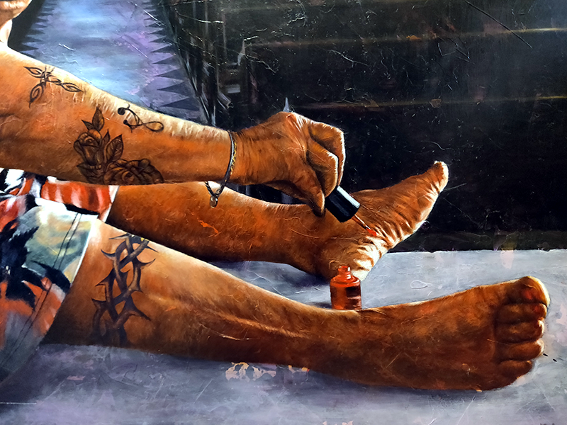 Además, necesitaba un lugar iluminado para pintarse las uñas de los pies. Así pues, en su altar se ofrece en sacrificio y es toda suya.