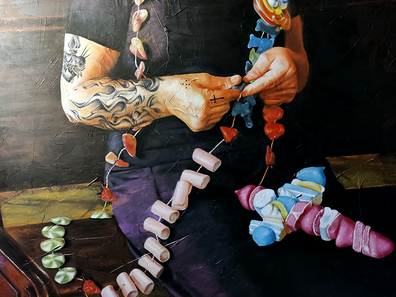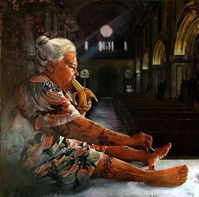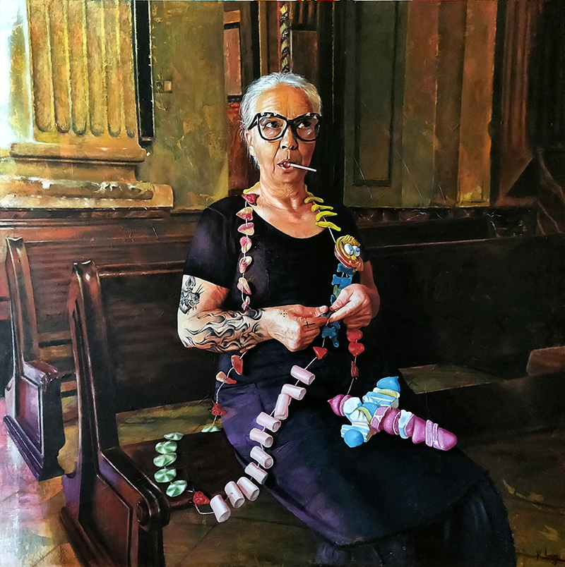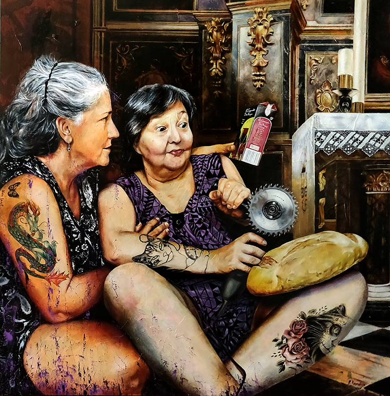 La mujer aquí presente aparece madura y segura rebelándose ante las leyes divinas. Son damas que, conscientes de haber sido injustamente señaladas como fuente de desdichas, vergüenzas y culpas asociadas a la carne, ahora deciden enfrentarse a Él en su Palacio. Son conciencias grabadas por el miedo al Pecado. El mismo Pecado que ahora le arrojan, a veces con humor, pero siempre con calma y determinación.