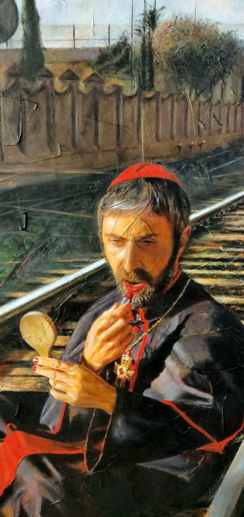 Y me siento plácidamente para dejarme arrollar por un tren, símbolo de transición y transformación, mientras como ves, pinto mis labios. Me iré, transcenderé, siendo fiel a mí mismo.